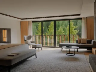 La renovación del hotel Aman Rosa Alpina, diseñada por el arquitecto Jean-Michel Gathy del estudio Denniston, redefine el concepto de hospitalidad alpina con un lenguaje arquitectónico contemporáneo. Los interiores abandonan los clichés tradicionales para privilegiar proporciones armoniosas, luz natural y materiales auténticos como madera clara, piedra dolomítica y metal bruñido, creando un equilibrio entre rigor y calidez en el estilo característico de Aman.