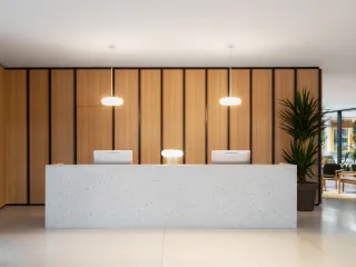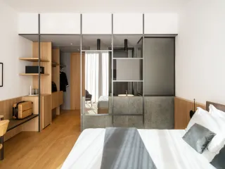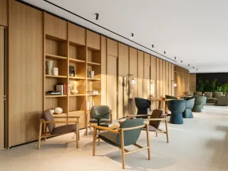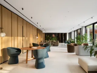 En este entorno exclusivo, Barausse ha contribuido con una selección de puertas a medida, puertas insonorizadas, puertas cortafuego certificadas y boiserie, perfectamente integradas en el proyecto arquitectónico. Las particiones de vidrio, las puertas de acceso a habitaciones y baños, y las puertas batientes y pivotantes integradas en las boiseries de las zonas comunes fueron diseñadas según el sistema Continuity de Barausse, que busca crear espacios coherentes y fluidos, donde los revestimientos, las puertas y los complementos dialogan mediante acabados coordinados y detalles perfectamente combinados.