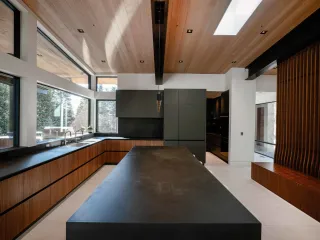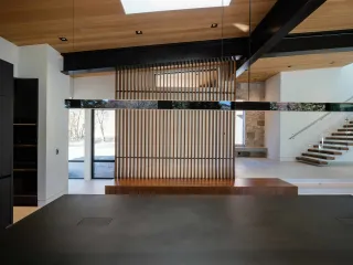 Three Falls House, en Alpine, Utah, fue concebida para integrarse armoniosamente con la naturaleza, el sonido del agua, la materialidad de los acabados artesanales y la luz que moldea cada espacio. Para esta residencia, Barausse suministró puertas enrasadas Secret Noce.