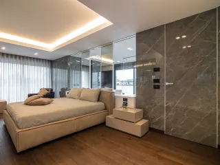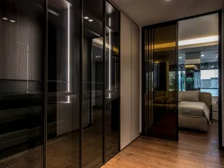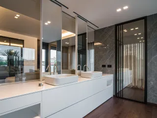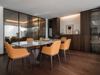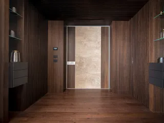 En plena sintonía con el lenguaje arquitectónico de la casa, Barausse suministró puertas de vidrio y aluminio con un diseño esencial que amplifica la luminosidad de los espacios, y puertas a ras de pared perfectamente alineadas, integradas con discreción y coherencia en las superficies.