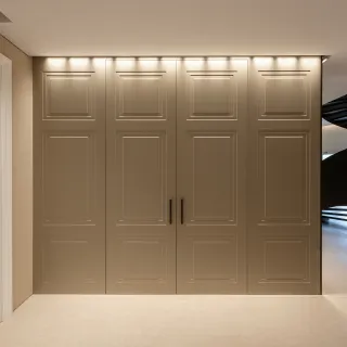 Disponible dans la même finition que le panneau de porte ou dans des tons contrastés, le lambris devient un élément architectural polyvalent, alliant fonctionnalité, esthétique et cohérence du projet.
