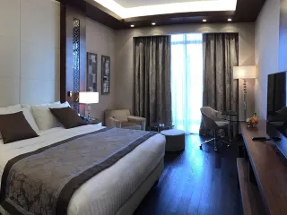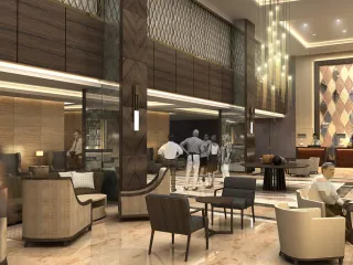 Le Marriott Hotel Bab Ezzouar présente une architecture moderne faite de volumes élancés, de vastes surfaces vitrées et d’un design contemporain développé par Mood Concept, typique du nouveau quartier d'affaires d'Alger.
