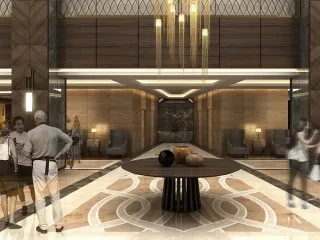 Dans ce contexte élégant et fonctionnel, Barausse a fourni des portes intérieures sur mesure, incluant des solutions certifiées pour la résistance au feu, la compartimentation et l’isolation acoustique, parfaitement intégrées au style luxueux de l’hôtel.