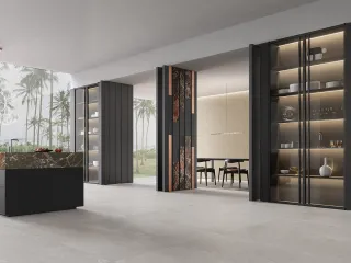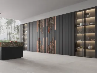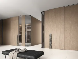 Celebrazione della creatività e del design, Dressed Up non è un prodotto, ma un concetto per declinare un abaco potenzialmente infinito di materiali e forme, che possono essere abbinati con la massima libertà compositiva. Un sipario che intarsia legni, marmi e metalli pregiati, integrando i vari sistemi di apertura con la boiserie per realizzare superfici senza soluzione di continuità anche di grandi metrature.
