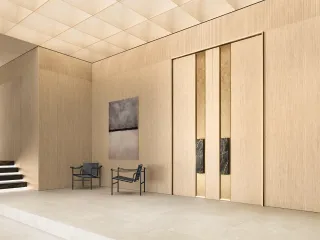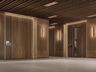 I listelli, in variazioni di spessore, si fondono armoniosamente con gli inserti pregiati in marmo Margraf e metalli De Castelli, trasformando la porta in un’espressione di potenza. La connessione di forme, volumi e trame genera una varietà di superfici ricche e dinamiche. Integrando i diversi sistemi di apertura con la boiserie, Dressed Up plasma ambienti distintivi e bilanciati che si adattano alle molteplici ispirazioni progettuali.