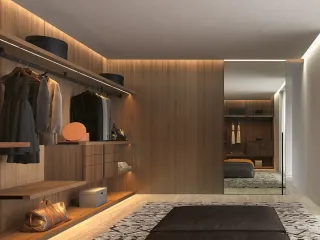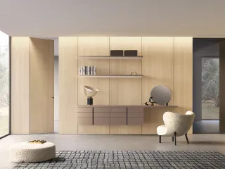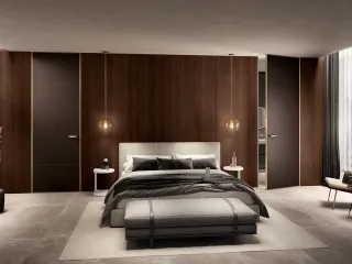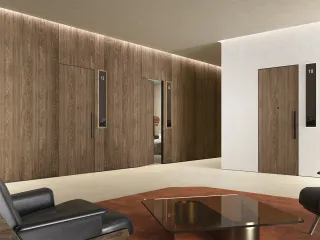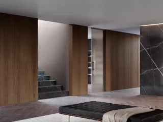 La boiserie si fonde perfettamente con gli elementi circostanti: non solo con l’arredo, ma anche con la continuità della parete e con le porte complanari, che Barausse propone con identica finitura e massima attenzione estetica.
