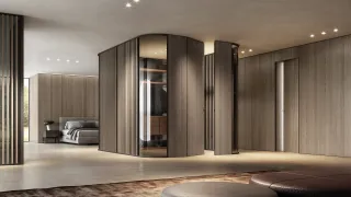 La boiserie Barausse, quando liscia con elemento curvo, costituisce un autentico fattore di arredo, che influenza l’abitare e la percezione dell’intero design dello spazio.