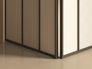 L’assenza di guida a pavimento assicura una continuità visiva impeccabile e una libertà totale di passaggio.