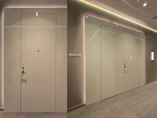 Barausse ha realizzato porte per l'ingresso degli appartamenti certificati per la resistenza al fuoco, porte interne e sistemi scorrevoli per gli armadi.