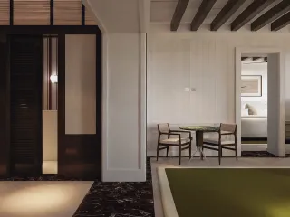 Per gli interni dell’hotel, ispirati allo stile classico dell’originale Hotel San Rafael, sono state fornite porte REI 60 in mogano africano lucido, porte scorrevoli bifacciali con veneziane integrate e specchio su anta intera, e bifacciali con doppia veneziana, oltre a telai e coprifili custom coordinati con le boiserie bianche.