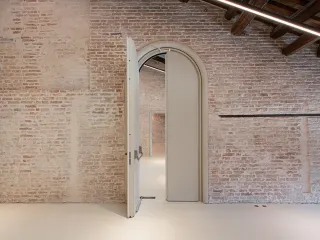 Gli interni, restaurati con maestria dallo studio David Chipperfield Architects, conservano il fascino autentico dei mattoni a vista, arricchiti da portali in marmo e porte tagliafuoco con finiture materiche di pregio.