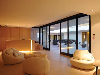 Per questo progetto esclusivo, Barausse ha fornito porte certificate resistenti al fuoco e porte scorrevoli, progettate per integrarsi perfettamente con il design ricercato degli interni.