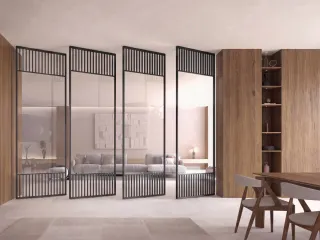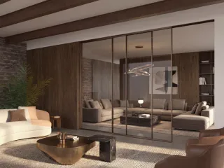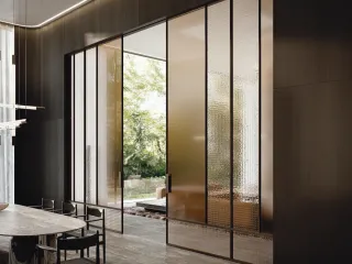 Ne deriva un interior fluido e armonico, in cui ogni elemento contribuisce attivamente all’esperienza abitativa. Oggi, con spessori rivisitati, le partizioni Barausse si trasformano in elementi di forte presenza estetica e architettonica: le finiture, come vetro ricotto e combinato, legno fossile e pelle pregiata, creano ambienti dentro l’ambiente e offrono ampia libertà progettuale. Sfumature di luce e scelte materiche ridefiniscono gli spazi, interpretando lo stile e i desideri di chi li vive.