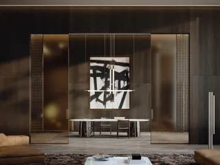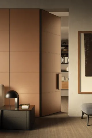 Ogni superficie Barausse, legno, vetro, pelle, laccata, può diventare pannello scorrevole, portando carattere nello spazio e trasformandolo ogni volta. L’ambiente rivela così, in continuo movimento, una nuova versione di sé.